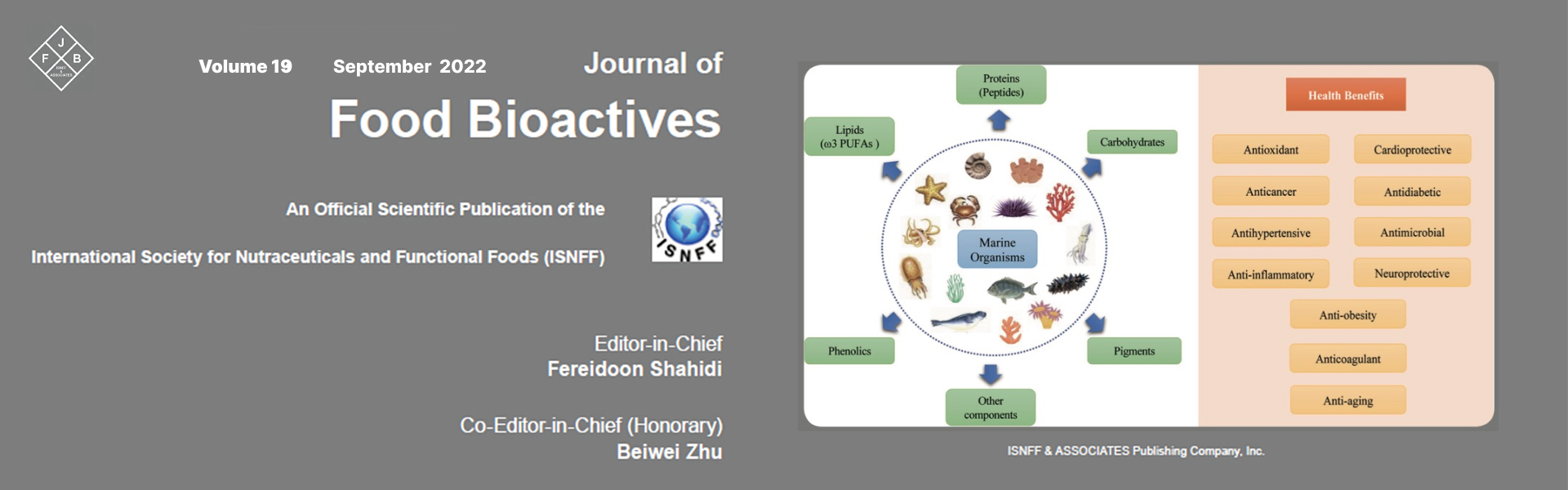 The International Society for Nutraceuticals and Functional Foods (ISNFF) is a Disciplinary Interest Group of the International Union of Food Science and Technology (IUFoST; approved 2008 in Shanghai, China). ISNFF was founded in 2007 and officially began its activities in 2008 by establishing its first journal, Journal of Functional Foods (JFF), published by Elsevier, as a cooperative initiative, and the Annual Conference and Exhibition (the first meeting was held in Taichung in 2008, Taiwan) as well as pre-conference and short course offerings. The Journal of Food Bioactives (JFB), is a recent dedicated publication that is published directly by ISNFF and Associates since 2018.